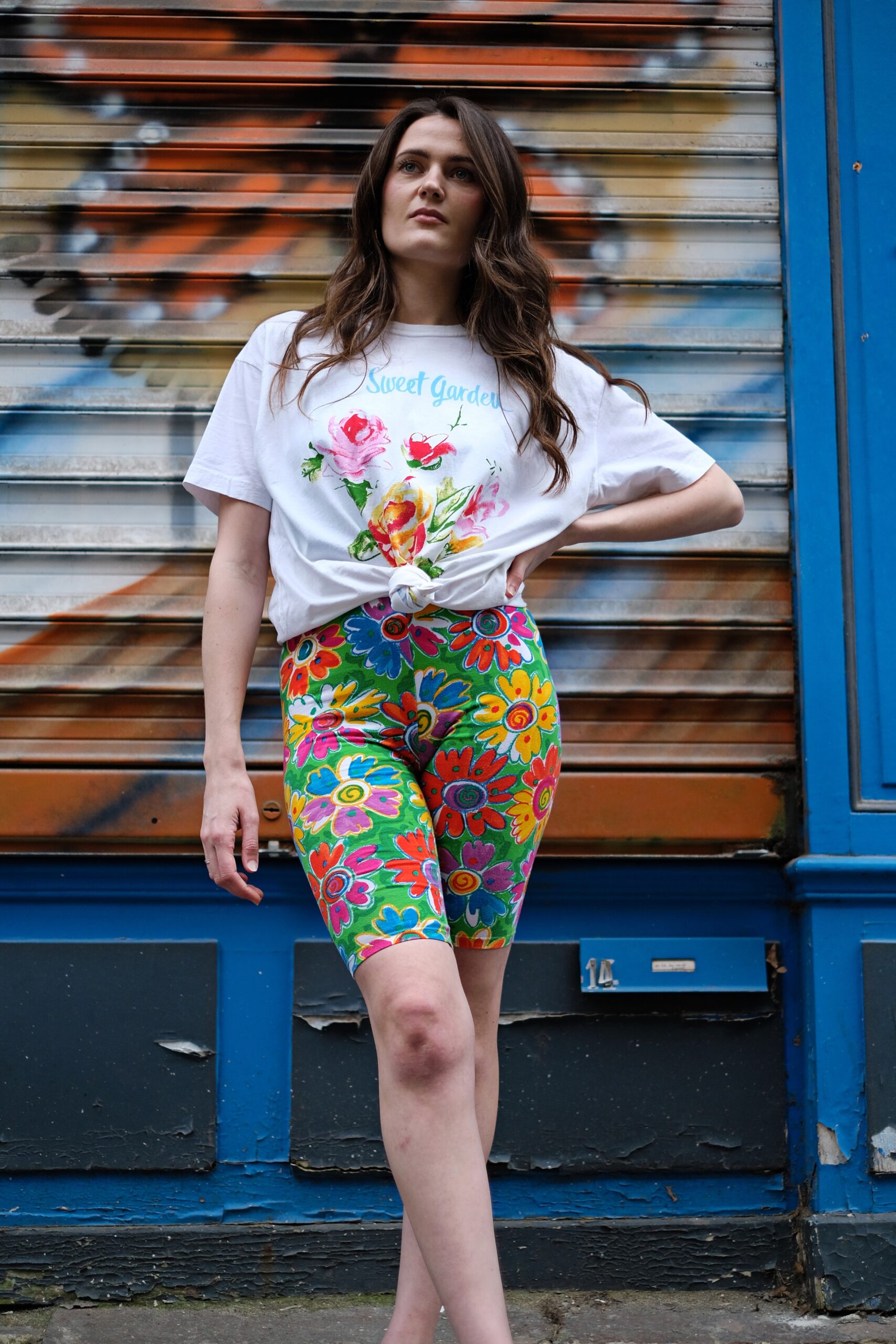 Short cycliste en coton stretch imprimé motif floral