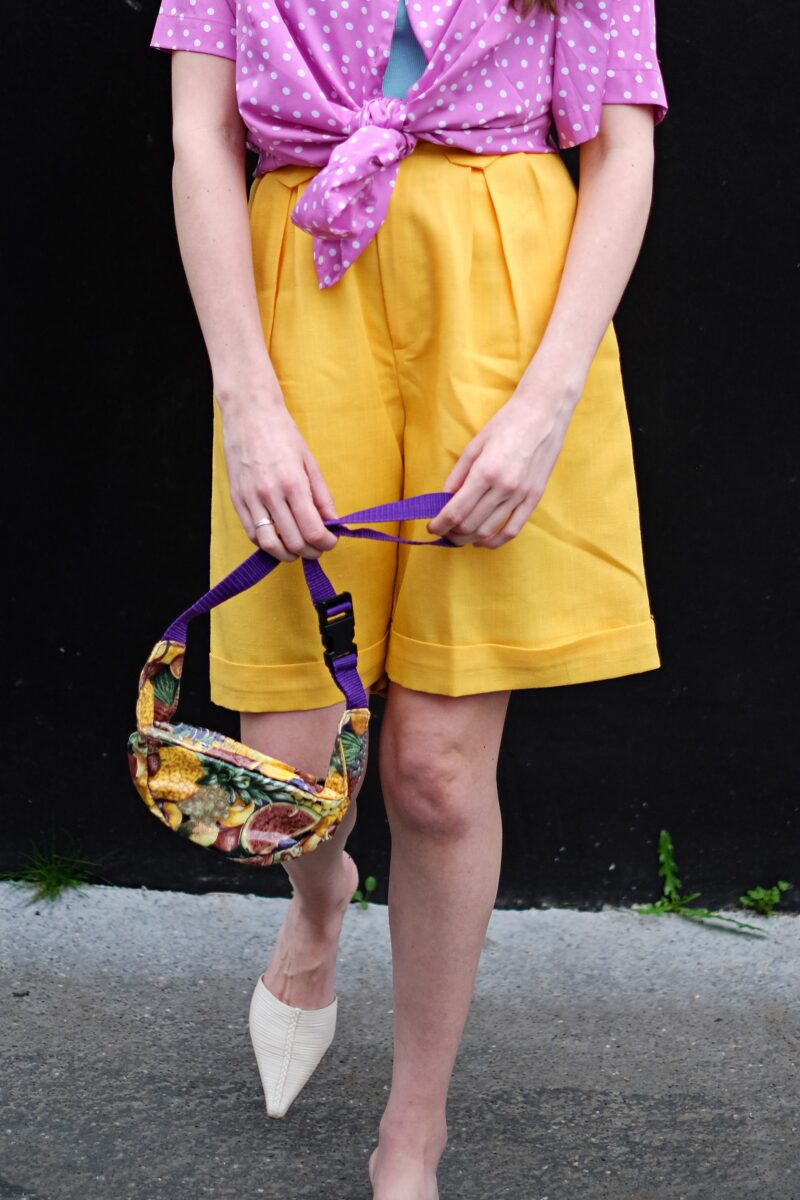 Short à pinces taille haute à larges passants en tissu toile légèrement flammé