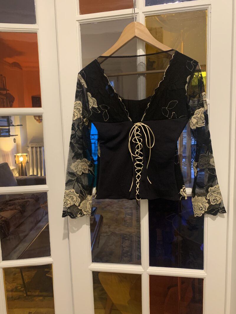 Top en dentelle encolure carrée avec empiècement tulle et laçage au dos